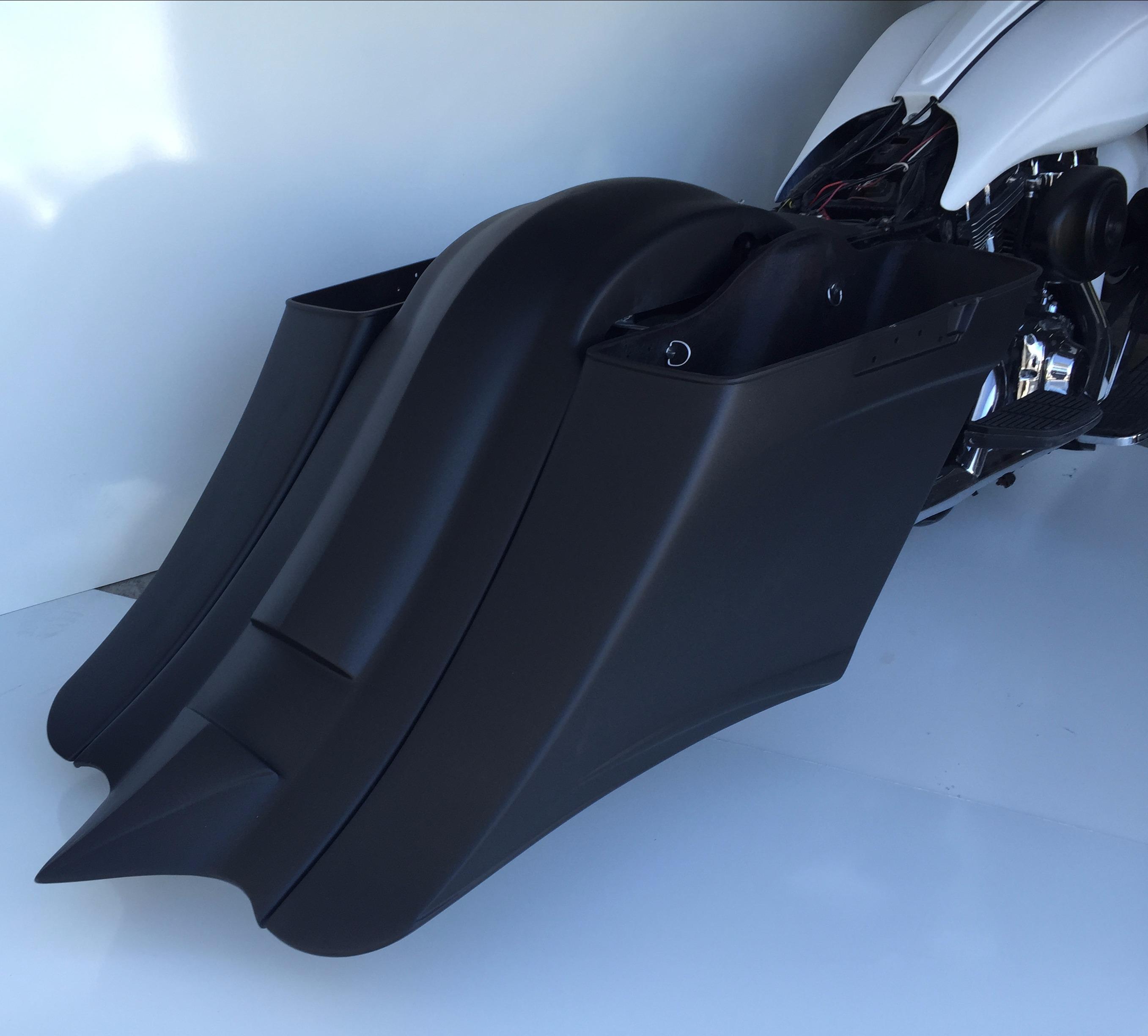 We distribute various types of Harley bagger parts including: - Stretched Saddlebags - Harley Chin Spoilers - Stretched Rear Fender - Wrapped Front Fender - Stretched Gas Tank Shrouds - Speaker Lids - And many more... All our products are 100% manufactured in the USA.